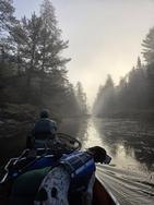 Around 9:30am we are finishing up the last portage into Fourtown. The mist is beginning to burn off now but still lingering enough that a solo paddler about half way up the lake asked if we came from the Mudro portages. After answering in the affirmative he said he had gotten a bit lost due to the fog.