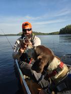 After a while Austin decides to take Cash for a walk and he harvests a spruce grouse. We clean up the bird and then hang around camp processing firewood, reading and relaxing. The wind picked up throughout the afternoon and evening. We make it out fishing north of our site to the point that separates Thursday and Friday Bay catching a few bass and a decent pike.