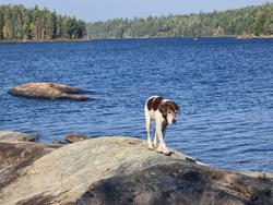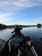 We take a lot of stuff to support the pup, shotgun and the usual gear so we double portage everything. These series of portages between Mudro and Fourtown are very pretty but the intervals between them get annoying but we move along full of enthusiasm. So far Cash the dog is doing well in the canoe. This was a bit of a worry as hes not been in a boat much at all.