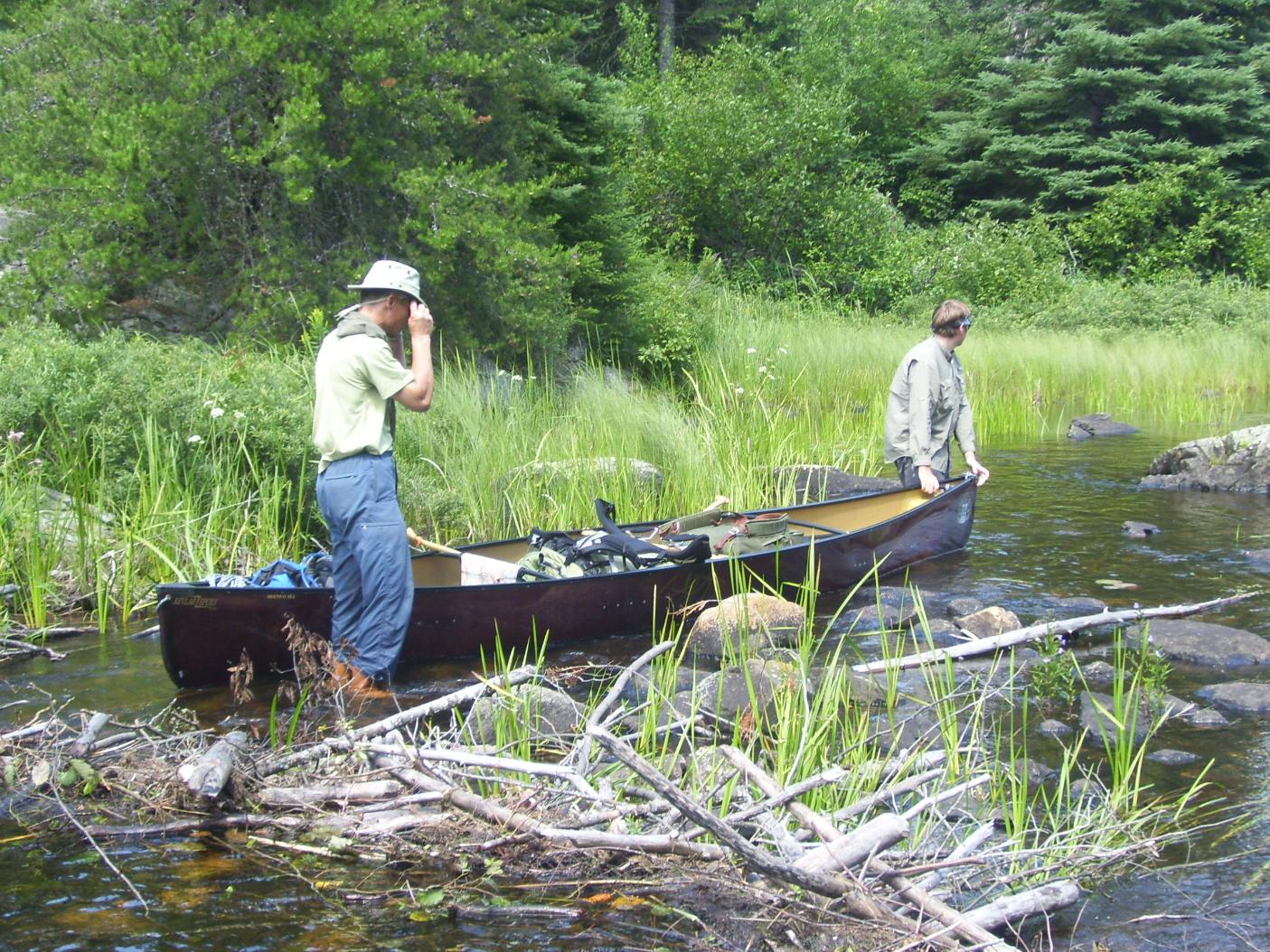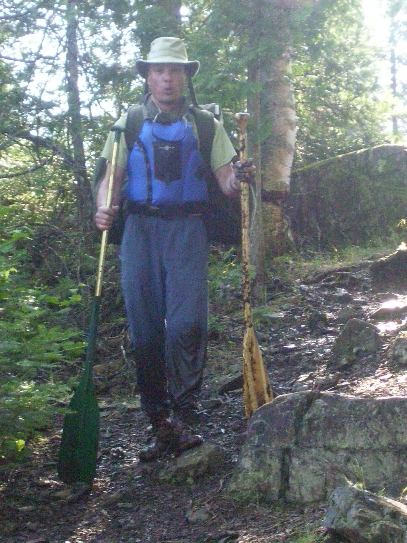 Most of this day's portages lacked endless length, but made up for their brevity with steep grades, low hanging branches, tricky footing on loose rock, thigh deep sucking mud, off camber footing, extended 30 to 35 degree sloped granite inclined outcroppings and portage landings that had been so shattered by huge fallen trees that loading and launching the canoes was to be done only in waist deep water.